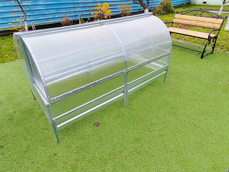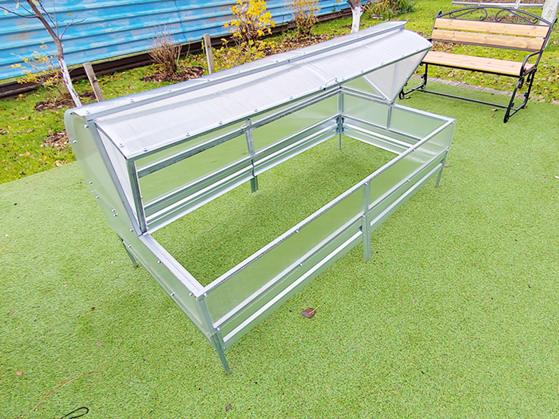 Парник «Хлебница» для вашего сада и огорода. Выполнен из оцинкованной трубы. Вес — 22 кг. Габариты упаковки — 1000х540х240 мм. Каркас теплиц с двойной дугой изготавливают из оцинкованного профиля 20х20 мм, который не боится коррозии. Высота парника — 75,5 см, ножки — 15 см. В сборном виде ширина 100 см, длина — 198 см. Высота борта грядки — 15 см. В качестве обшивки используют поликарбонат – синтетический материал, свободно пропускающий до 85 % необходимого растениям солнечного света. Наш мини парник для рассады удобен открытием с двух сторон.